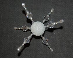 This beaded snowflake craft is made from beaded corsage pins, simply pushed into a foam ball.
