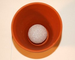 8. Fill up your pot with filler. I used fake Easter grass. A few other ideas are confetti tissue, small stones, or jelly beans! Add a bow around the pot (optional) and the flowers are ready to display!