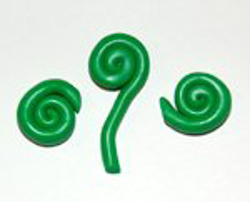 1. Begin the shamrock polymer clay barrette by making a very long, thin rope out of green polymer clay. Choose the shade of green you want to be the background. In this example, I used light green to be the base color for the clip.